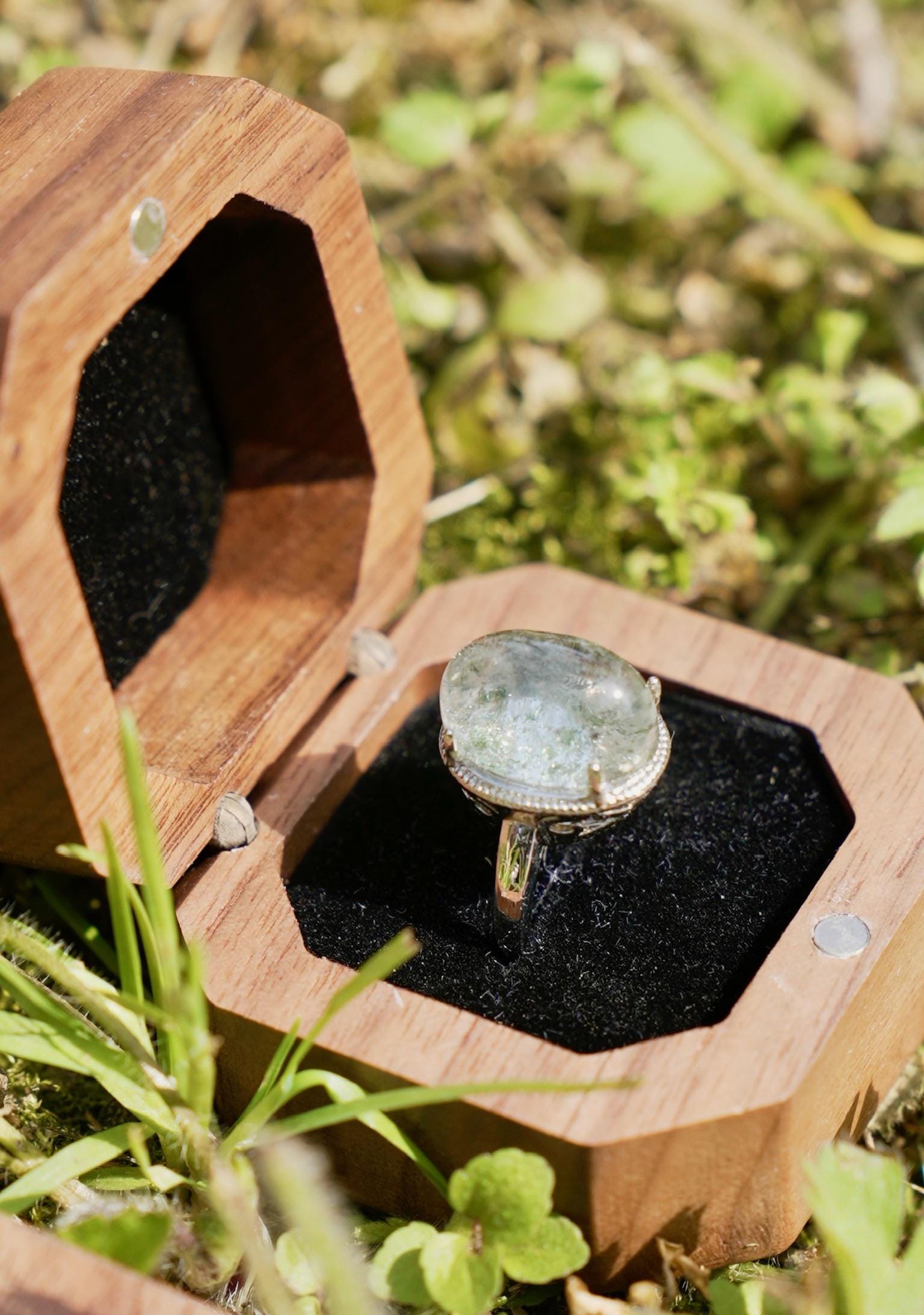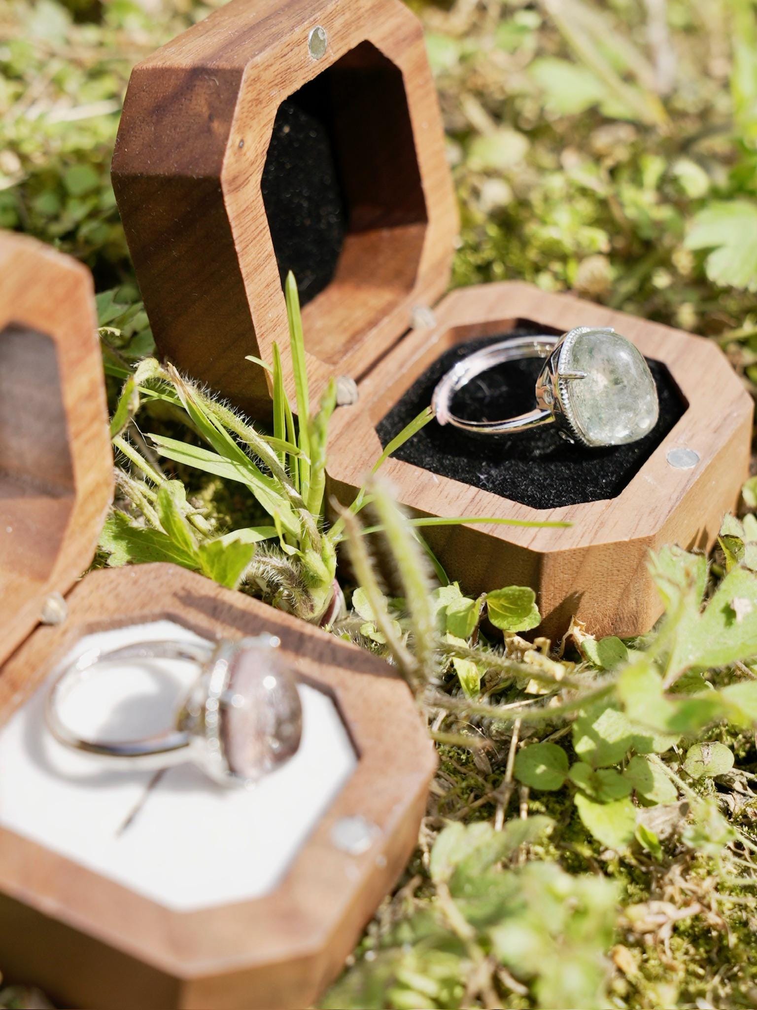 Both rings come in a luxury octagonal walnut wood box, magnetically sealed and cushioned — ready for gifting!