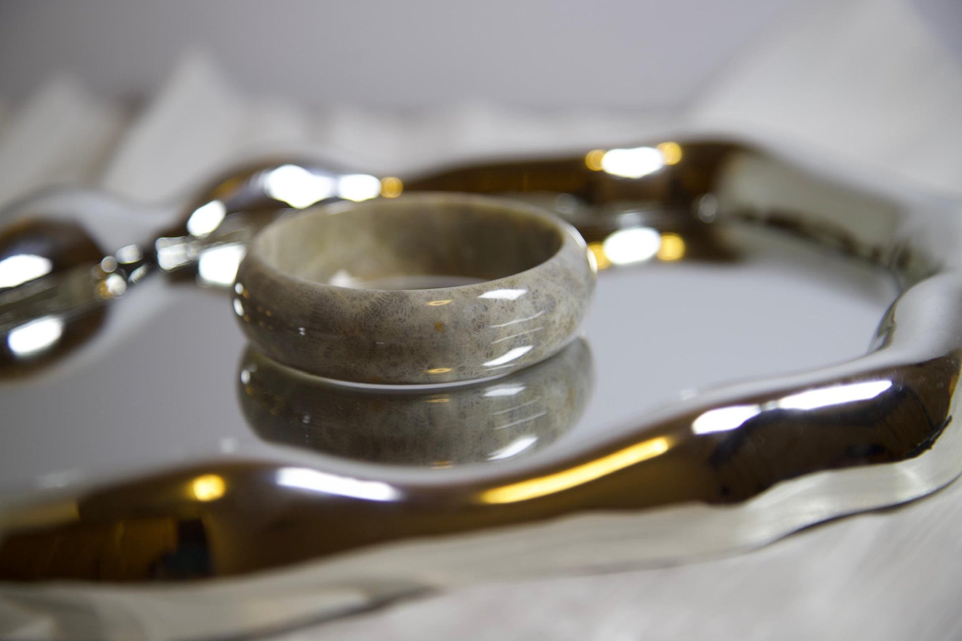 Embrace the beauty of nature with this exquisite natural fossil coral stone bangle. Expertly polished to a smooth, glossy finish, this bracelet showcases the intricate, timeless patterns of ancient coral, offering a one-of-a-kind accessory that connects you to the Earth's history.