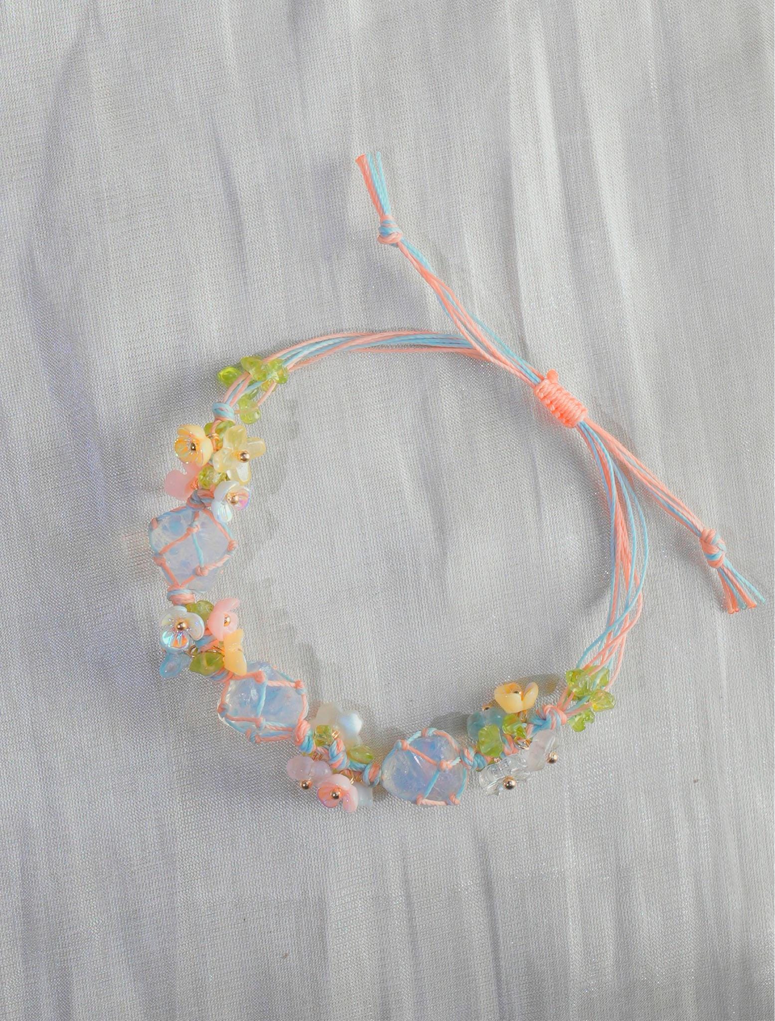 🌸✨ Add a soft, dreamy touch to your everyday style with our Handmade Floral Crystal Thread Bracelets. Each piece features hand-wrapped raw crystals, delicate glass beads, and miniature flowers, all strung on durable, pastel-colored thread using intricate macrame techniques. Lightweight, comfortable, and full of charm, these bracelets bring nature’s beauty right to your wrist.
