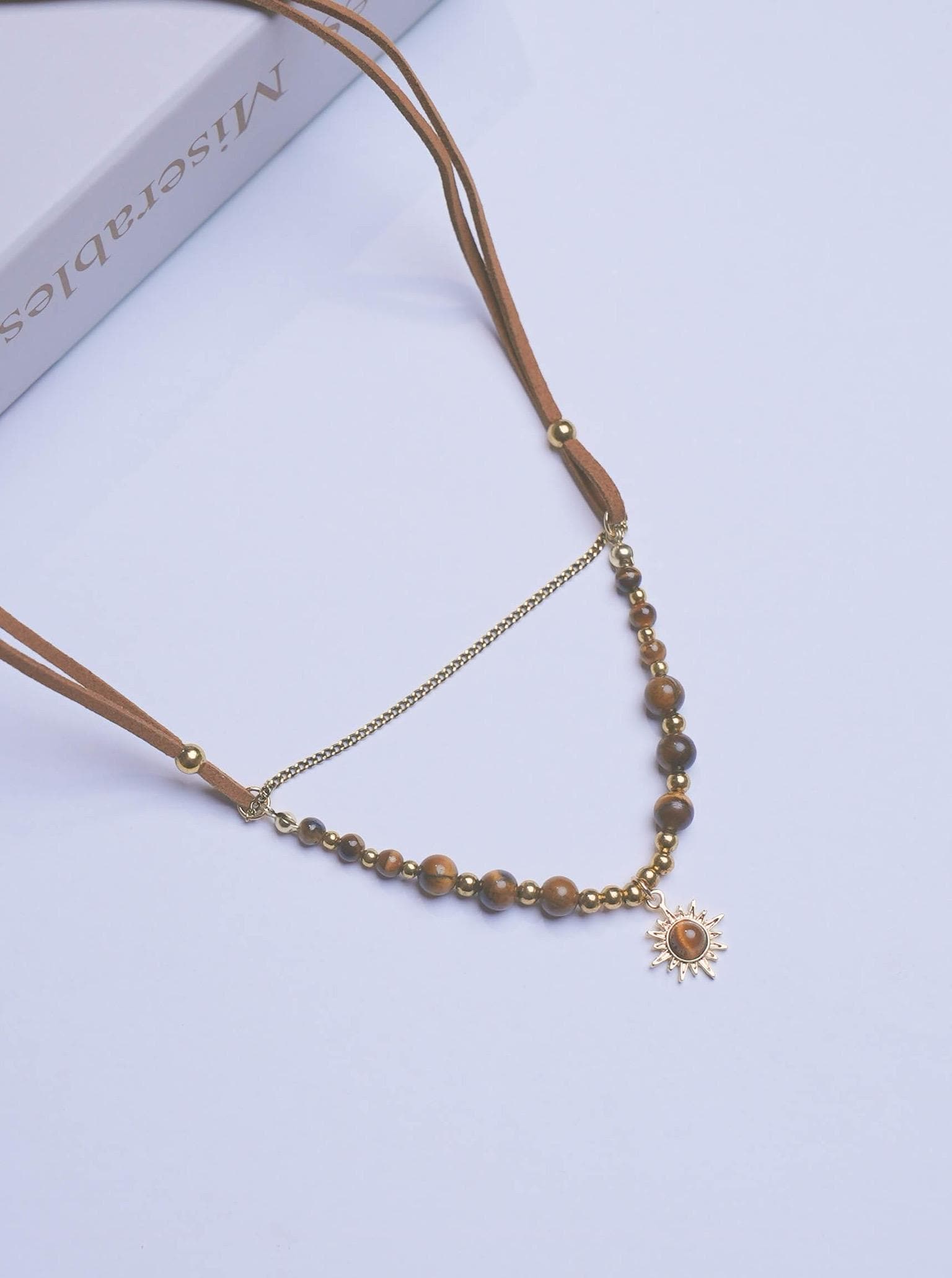 Tiger’s Eye Sun Pendant Necklace • Boho Gemstone Choker • Healing Crystal Jewelry • Layered Sun Charm Necklace for Protection & Confidence